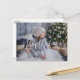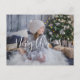 Elegant and simple, custom photo holiday postcard with beautiful "Merry Christmas" photo overlay in modern calligraphy, with ability to "move and drag" to any position to suit your photo best by selecting customise further, and using editor tool, with link button located at the end of template text boxes. Simply select "front" layer from layers menu, where you can "grab" the Merry Christmas phrase from the screen, and "move" to any place you like! click on "done" top corner button once finished. Use template text boxes to fill in your personal message and return address on the back. Same postcard design also available with lettering in real foil.