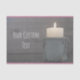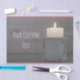 repeating rustic image of single lit white candle in a rustic grey blue candle holder adorned with twine