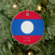 Celebrate Laotian heritage with our personalised flag ceramic ornament. This beautifully crafted piece features the striking Laos flag design - the bold red stripes bordering a deep blue centre band with its powerful white circle, symbolising unity, peace, and the nation's journey. Add your custom message to create a meaningful keepsake that honours Laotian culture and pride.