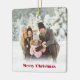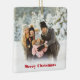 This ornament is ready to be customised with your own photo in a square shape. Your custom message appears in bold red lettering against a white overlay at the bottom of the picture. There's also a spot to add additional text on the reverse side.