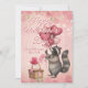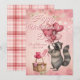 Happy Valentine's Day romantic card with a personalized message and a raccoon illustration with heart balloons. Pink and red background with a plaid backing.