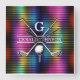 Custom Metallic Colourful Golf Monogram Design Square Wall Clock