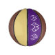 Custom mini basketball is shown here with colour accents of purple and gold with a dog paw print.