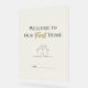 Celebrate your new beginning with this elegant modern minimalist wall art. Featuring the heartfelt phrase “Welcome to Our First Home” and a simple, refined house icon, this design adds warmth and sophistication to any room.