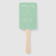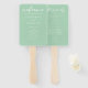 This soft mint green wedding program hand fan features chic white typography for a sweet spring outdoor ceremony. Simple and elegant script on tranquil solid pastel green fans for a garden reception favour.