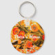 Custom Mod Mid Century Orange Flowers Yellow Brown Key Ring