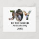 Custom modern 3 photo collage joy to the world. Personalise with your photos, family name and year