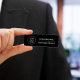 Create your own Custom Modern Black Logo Name Tag, simply add your logo to this black name tag, enter your employee name and job titel for a branded professional image. Choose between traditional pin or magnetic back.