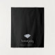 A custom black handmade jewellery modern printed tapestry that can be customise to a table runner for your pop up shop. Customise the table runner with your business modern text and create your own table runner for your craft shows and vendor events. Perfect for trade shows, pop up shops, expos etc. Ideal for handmade jewellery workshops, jewellery vendor booths, handmade fashion accessories and more. Simply customise text and your own image or leave the diamond image as is.