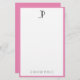 Custom Modern Elegant Monogram Minimalist Template Pink And White Stationery Paper.