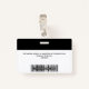Easily personalise this Custom Employee Name Badge with Photo, Scan Bar Code and business logo. A simple horizontal business design in minimal black and white colours fully customisable in front and back sizes, condensed sans-serif basic and modern fonts and a professional and clear look. Avaiable with lanyard, metal clip or with retractable. No minimum order.