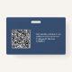 Easily personalise this Custom navy blue Horizontal Business Minimalist Employee Name Badge with Photo, Scan Qr Code or Scan Bar Code and business logo. A simple business design with round photo, in navy blue and white colours, with arc photo shape, fully customisable in front and back sizes, sans-serif basic and modern fonts and a professional and clear look. Avaiable with lanyard, metal clip or with retractable. No minimum order.