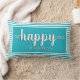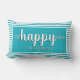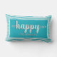 Custom Modern My Happy Place Teal Stripe Lumbar Cushion
