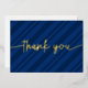 Custom Modern Script Navy Blue Stripes Thank You