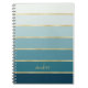 Custom Monochromatic Gradient Teal Gold Stripes Notebook