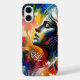 A striking phone case featuring a bold, multicolor abstract painting of a woman’s face with flowing brushstrokes and a customisable monogram. Make your phone a canvas of emotion and identity.