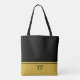 A gold band is at the bottom of this black and gold tote bag. Personalise with your initials.