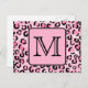 Custom Monogram. Black and Pink Leopard Print. Postcard