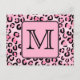 A black and pink leopard print pattern design with a monogram letter, the initial letter can be personalised. The background pattern is an animal print design.