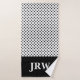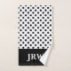 This monogrammed bath towel set is black and white and has a classic polka dot pattern. Personalise the set with the recipient's monogram/initials.