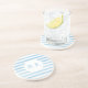 Set your drinks down on these beautiful custom monogrammed sandstone coasters with a pretty blue and white stripe background.