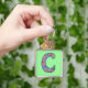 A very pretty Keychain with the initial 'C' in a multicoloured floral pattern on a Light Green background. You can easily change the shape and size of the keychain as well as the background colour (by using the Edit button). And if you see one of my other patterns that you prefer, please contact me through my store and I will create one at no extra charge.