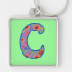 Custom Monogram C Keychain, Ditsy Floral Pattern Key Ring