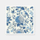 This is a set of custom monogrammed napkins that combines functionality with refined style. Each napkin showcases an exquisite blue and white pattern reminiscent of classic porcelain tableware, adorned with graceful birds and a delicate floral design. The elegant motif creates a tranquil and sophisticated atmosphere for any dining experience.