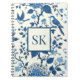 This is a beautifully designed spiral-bound notebook featuring a custom monogram. The cover art is a classic and elegant blue and white floral pattern, reminiscent of traditional porcelain designs. It’s adorned with a variety of stylised flowers and leaves, interspersed with charming birds in mid-flight and at rest, evoking a serene garden scene. The focal point of the design is a centred square frame that houses your custom monogram initials in a bold, serif font, suggesting a personal touch for the owner. This notebook would be perfect for personal journalling, as a thoughtful gift, or a stylish accessory for school or office work. The monogram adds a unique and personalised aspect, making it a treasured item for anyone who receives it.