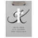 With God All Things Are Possible Christian cross clipboard. Elegant name monogram with religious icon. Christian faith logo accessory design with monogrammed initial letter. Religious gift idea for friends, family, sister, mum, grandma, grandmother, wife, daughter, teacher, wedding planner, guests, couple, bride and groom, boss, co worker, coach, church pastor, priest, Catholic, Baptist, Lutheran, Evangelical, Methodist, Protestant etc. Monogrammed Christianity symbol with spiritual quote, inspirational scripture, Jesus sayings or custom bible verse. Personalised presents for him and her. Also nice for First Holy Communion or bridal shower. Custom school and office supplies. Customisable background colour.