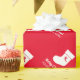 Custom monogram Christmas stocking Holiday gift wrapping paper for kids and adults. Cute xmas sock gift wrap roll design with custom greeting and name. Elegant script typography template. Red or custom colour.