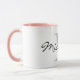Custom monogram combo mug with pink colour inside. Design your own personalised drink cups. Classy monogrammed name initial design. Stylish typography template with script text. fancy Birthday or Christmas gift idea for friends, family, co worker, boss, teacher, coach, colleague, corporate employee etc. Customisable colours including the handle. Make your own unique coffee mug for home or office.
