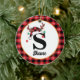 Celebrate Christmas with this personalised family ornament featuring a plaid Santa hat, antlers, and festive ornaments! The bold monogram initial and customisable name make it perfect for holiday gatherings and family photos.