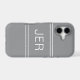 Elevate your iPhone 17 with this modern Case Mate cover in stylish Grey. Featuring up to three bold initials in shadowed white font, the design uses subtle borders to frame the monogram for a clean, professional look. Personalise easily with your name, initials, or short text using the simple template. A chic minimalist option that works for both men and women, perfect as a stylish everyday accessory or thoughtful gift.