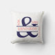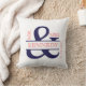 Personalised Custom Monogram keepsake wedding or anniversary pillow in Navy Blue and Coral text or typography on a white background on the front and navy blue background on the back for square throw pillows and cushions. Customise with the bride and groom family name and wedding date. This stylish and chic, modern, trendy, contemporary design will enhance any home decor, living room, sofa, lounge, bedroom, office, or boat. This pillow or cushion is a perfect gift weddings, anniversaries, bride to be, couples, engagements or for yourself or someone you love. Simple and elegant.