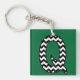 A very stylish keychain with the initial 'Q' in a black and white chevron pattern. The background shown is dark green but you can choose from a wide selection of background colours by using the Edit button. You can also choose a different type or shape of Keychain or rotate the initial for a better fit - have fun with it!