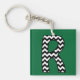 A very stylish keychain with the initial 'R' in a black and white chevron pattern. The background shown is dark green but you can choose from a wide selection of background colours by using the Edit button. You can also choose a different type or shape of Keychain or rotate the initial for a better fit - have fun with it!