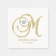 Gorgeous elegant personalised monogrammed letter 'M' wedding napkins for your reception. Not cheap looking but expensive and classy. Monogram last name, bride and groom's names and date. Gold with white background. Faux diamond heart in middle. Font and size can be edited. Cocktail napkins also available. Contact Designer for other Letter or Background colour