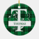 Custom Monogram Letter T Green Plaid Background Ceramic Tree Decoration