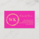 This is a modern and vibrant, logo and two initials, monogram card design. This stylish design, is in colourful hot pink/ magenta with light gold coloured typography / text. There are gold circles that form a wreath-like ring around the monogram letters. You can use this as your own logo or add your own. (If adding your own logo, simply delete the initials.) The template design is set up for you to simply add your business information and contact details. You can keep the monogram logo or add your own, along with your business name and business information on the front. On the back it has room for your business contact information, where you can add your website, social media info, telephone number and address or your contact details of your choice. Ideal for a professional and chic business card to give to your customers and business contacts. To personalise, simply add your initials or logo, and business information by using the personalise this text box. To customise further, check out the design editing tool, where you have the option of changing the colour or font. If you need help with personalisation, matching products, or for a custom design, contact me via zazzle chat.