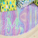 personalise this customisable pretty tree skirt, featuring a beautiful pastel iridescent faux holographic seamless gradient pattern, with pretty pink, purple, aqua, and powder blue hues, with your name and last initial for some holiday monogram magic below the tree.