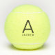 Modern elegant and understated masculine monogram initial and custom name on yellow tennis ball in a classic minimal, professional-looking sans-serif font for a simple look.
