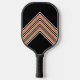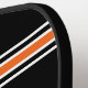 Stand out on court with a custom pickleball paddle! Personalise the template with your monogrammed initials and text — ideal for a player's name, team name, location, or a fun saying. This sports jersey style design features a retro block-style font, trendy script, and matching chevron colours on the reverse side. Perfect for all ages, including kids, teenagers, and adults. Custom paddles make a lovely unique gift for friends, family, and Pickleball enthusiasts! Colours: orange, black and white.