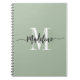 Elegant, modern gift notebook with your custom name and monogram in a trendy hand lettered script calligraphy design in minimalist sage green and black, this typography driven design makes a great gift for coworkers, teachers, coaches, girlfriends, boyfriends, wives, daughters, or any other work or family member! Great for the office or home decor this chic note book makes a fun, stylish present for any birthday, wedding or bridal shower!