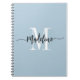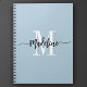 Elegant, modern gift notebook with your custom name and monogram in a trendy hand lettered script calligraphy design in minimalist dusty blue and black, this typography driven design makes a great gift for coworkers, teachers, coaches, girlfriends, boyfriends, wives, daughters, or any other work or family member! Great for the office or home decor this chic note book makes a fun, stylish present for any birthday, wedding or bridal shower!