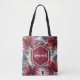 Custom rustic red poinsettia tote bag. - Whimsical watercolor red poinsettias, holly leaves, and winter berries on a white wood background. The winter floral background is topped with a berry red label and custom monogram / script calligraphy name template. A traditional, whimsical poinsettia gift with a personal touch.