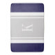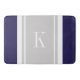Custom Monogram Navy Blue Grey Stripes Pattern Bath Mat