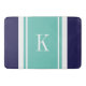 Custom Monogram Navy Teal Mint Stripes Pattern Bath Mat