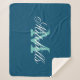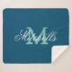 Custom monogram ocean blue medium size soft fleece sherpa blanket