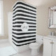 Custom Monogram on Black Stripes on Custom Colour Shower Curtain